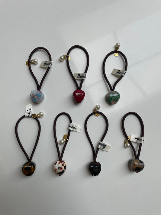 9cm - Handmade Heart Bead Hair Ties, Elastic Hair Bands with Faux Pearl Charm, Durable and Stylish Hair Accessories for Women, Girls, or Daily Use