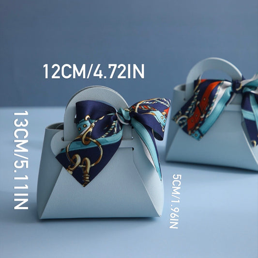 Elegant Mini Handbag with Bow Accent, Black and Sky Blue Faux Leather Purse for Women, Compact and Stylish Gift for Any Occasion, Small Tote Bag with Handle