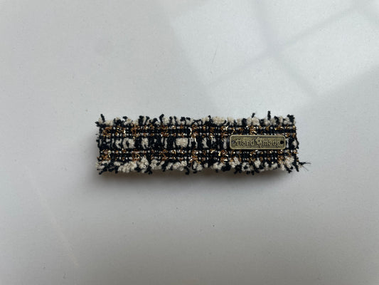 8.5cm - Handmade Tweed Hair Clip, Black & Gold Barrette, Elegant Hair Accessory, French Style,Wedding,Anniversary Gift,Durable Metal Clip, Hair pin