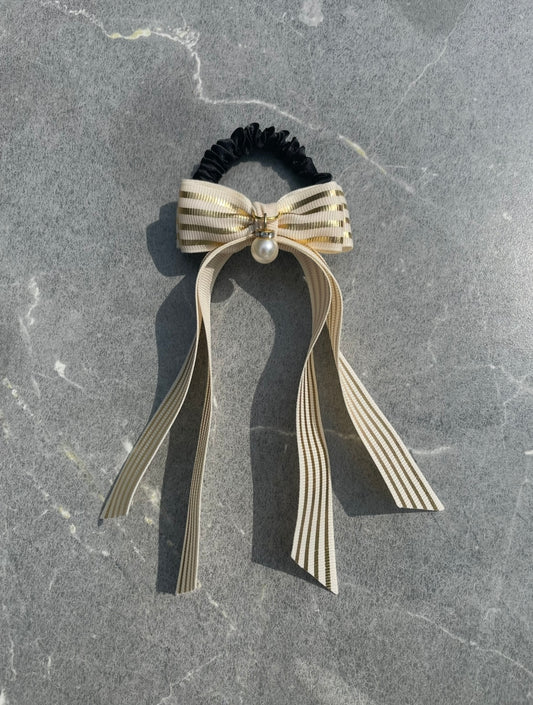 ✨ Elegant Ribbon Hair Tie with Pearl Charm – For Golf & Tennis Style