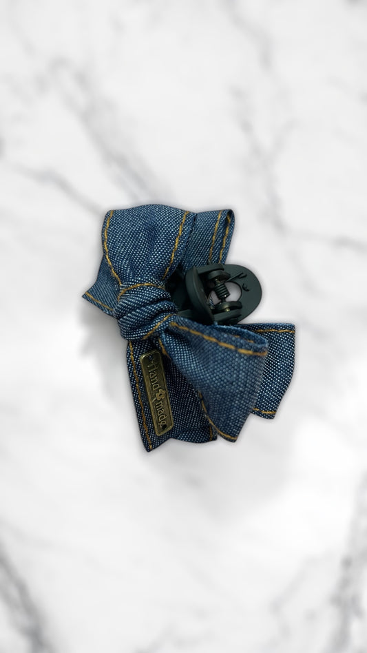 🧵✨ Denim Bow Hair Claw Clip | Handmade Chic Hair Accessory for Everyday & Sports