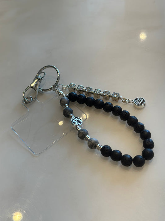 ✨ Personalized Natural Stone Phone Strap for Men | Custom Name Beaded Keychain 🔗 / ✨ 천연석 남성용 핸드폰 스트랩 🔗 | 이름 각인 맞춤 키링