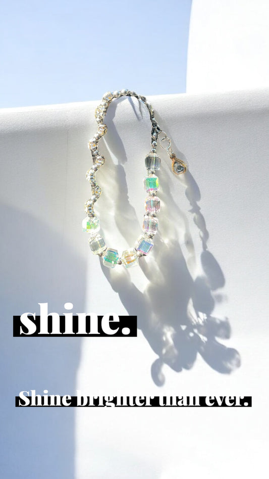 ✨Nature-Inspired Iridescent Cube Bracelet 햇살 머금은 자연 감성 큐브 팔찌 🌿✨